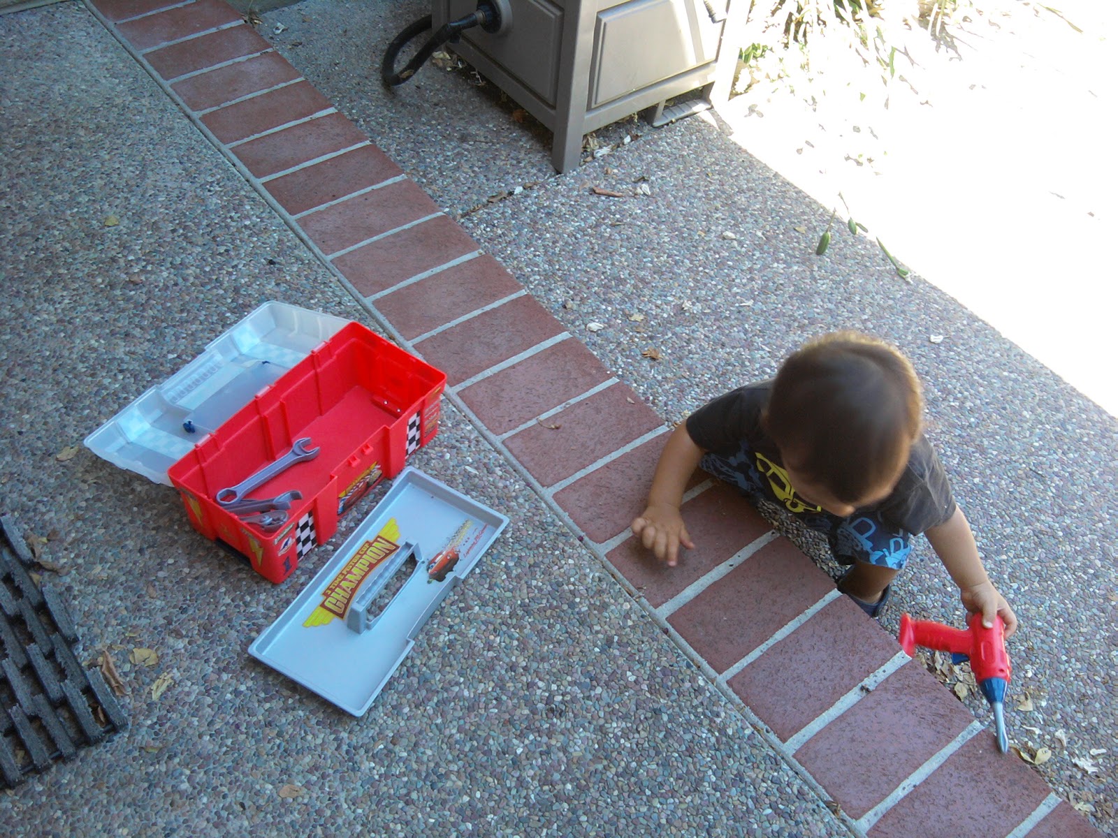 “ボク、マイ工具箱(おもちゃ)で修理もするよ”